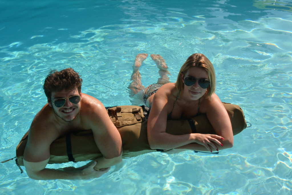I wanted to see how buoyant the Air Armor LGC was and prevailed upon a couple of young folks basking by a nearby pool. If a hunter was thrown from a boat, would the case support his weight in the water? Secondly, would the case float well enough to provide enough flotation until rescued?