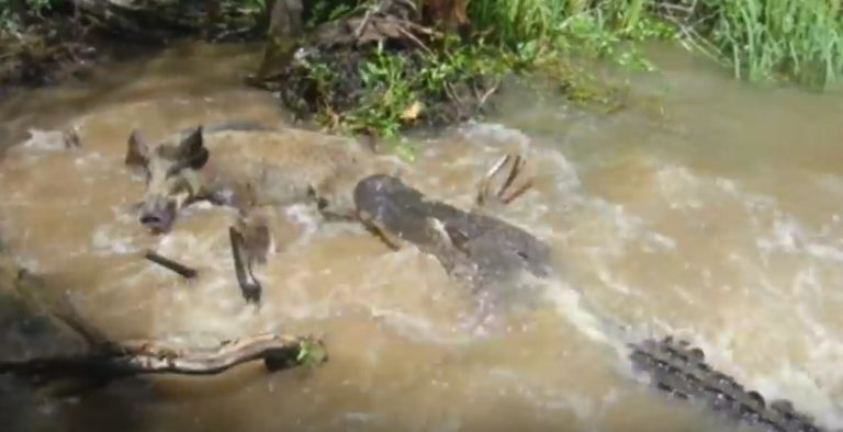 Watch as some tourists bait a wild hog into dangerous water, where a huge alligator takes it down. Be warned, this video is quite graphic.