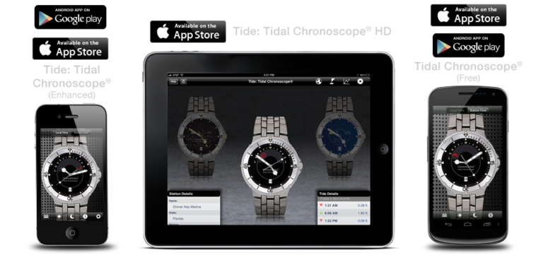 The Tidal Chronoscope utilizes the GPS function on smartphones to provide instant and current tide information, and is packed with other features including tide predictions up to seven days in advance, 9,400 worldwide tide stations to choose from, tidal predictions by the hour, and much more.