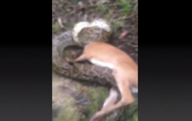 Imagine walking upon a whitetail deer about to be strangled and eaten by a giant python. This is one time where a deer can be very grateful for a hunter’s presence.