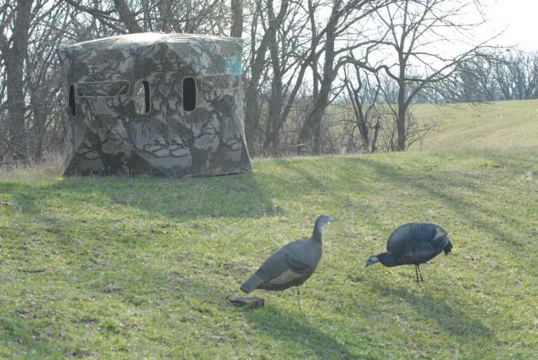 Scouting is important to pick the best spot and if you are hunting-friendly turf, the presence of your blind will discourage other hunters from approaching. The rounded dome of a pop-up is easy for a hunter to spot, while turkeys will completely ignore the blind as long as it doesn’t move.