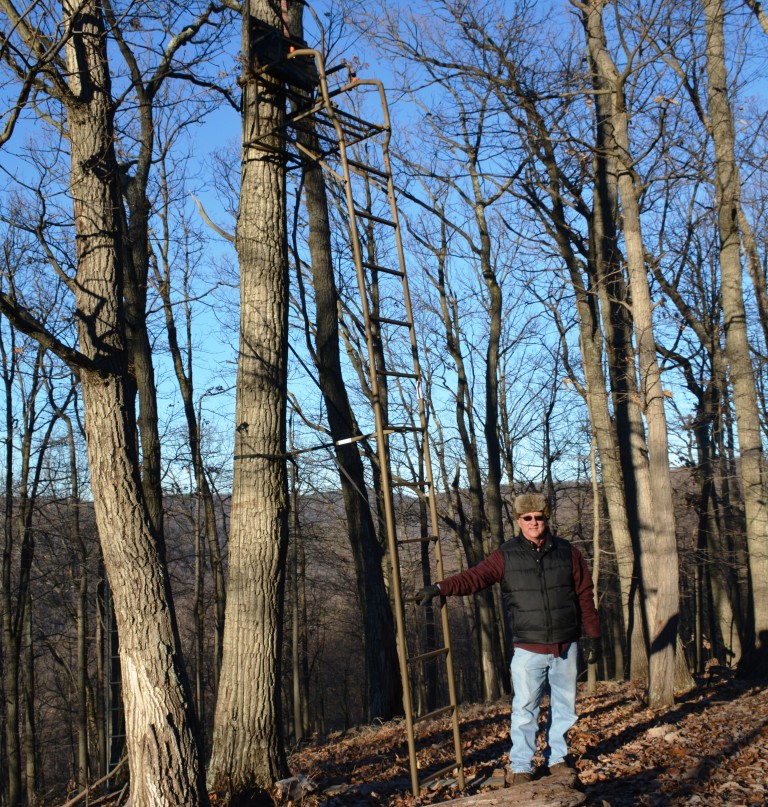 Once done, I asked my good friend Dan Monkiewicz for an assist to raise the stand. Choosing the coldest day of the year, we headed for the mountains and had the stand locked in place in quick order. Ironically, ladder-style stands are among the safest of elevated hunting perches, yet can be dangerous to put up. I applaud F&S for their easy-to-read directions and the strapping and reinforcing nature of their stand. We braced the ladder and used the adjustable metal support and reinforcing straps that crossed behind the tree. With Dan holding the ladder firmly at the bottom, I climbed up and cinched the stand tightly against the tree. Simple. But you’ll still want to use the same safety precautions erecting a stand as you would hunting it, including a safety harness and life-lines.