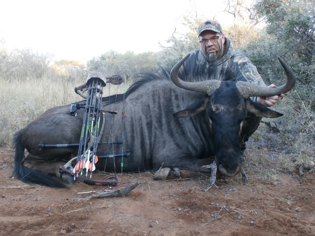 Jere Neff and I booked with Agagia Safaris in Namibia because they have, hands down, the best bowhunting operation in my 21 African safaris. That said, they can’t control the weather; this year they had double the rain of a normal year, as well as a downpour the day before we arrived. The result: Only a fraction of the usual animals came to drink. The exceptional rainfall didn’t affect rifle hunting and we did very well in the few days we used the “long bow.” Yet bowhunting was our priority and Jere took a great, wide-horned bull blue widebeest on the third day of the safari. He was so excited, he could practically fly.