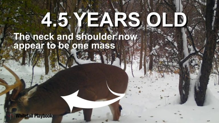 The neck will show a fair bit of swelling now. The chest and shoulders will appear to be much larger, too. However, there is still a defining line separating the conjoined neck and shoulder. This age class also exhibits a tight waistline. Using the aging trick, these bucks will most likely appear to tip forward, but could also appear to be balanced from rump to shoulder, depending on exact age.