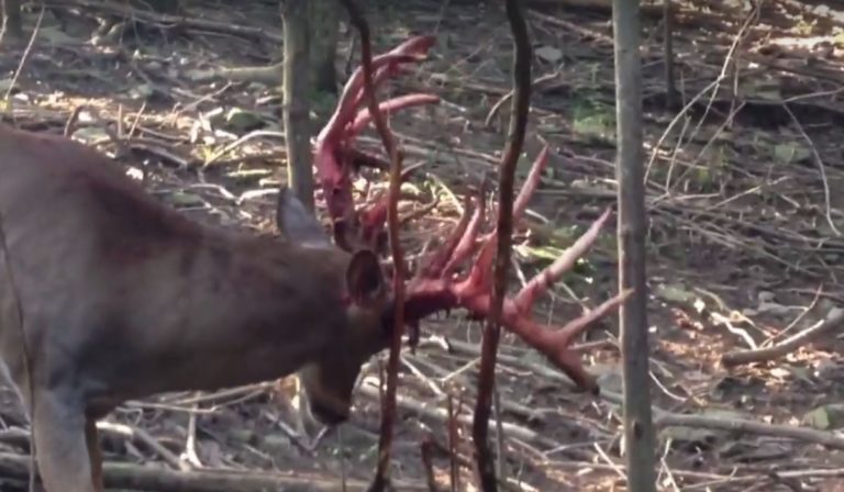 Need proof? Watch the brutal and bloody process this buck goes through to help remove all the velvet from his antlers. This guy is really letting out some pent-up aggression, and I’d say those two saplings are taking quite the beating.