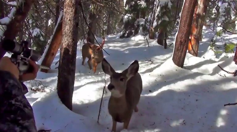 This YouTube footage is especially humorous as a big buck approach to three steps, practically staring down the barrel of a rifle. Check it out.