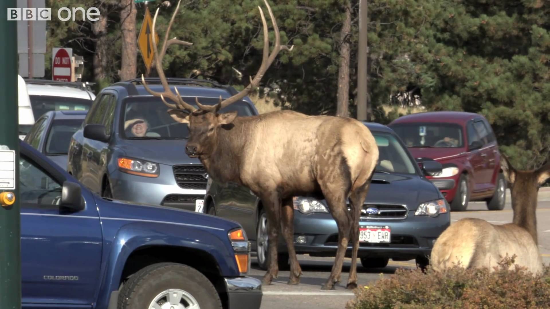 Even your car might not be safe when a big bull elk is riled up.