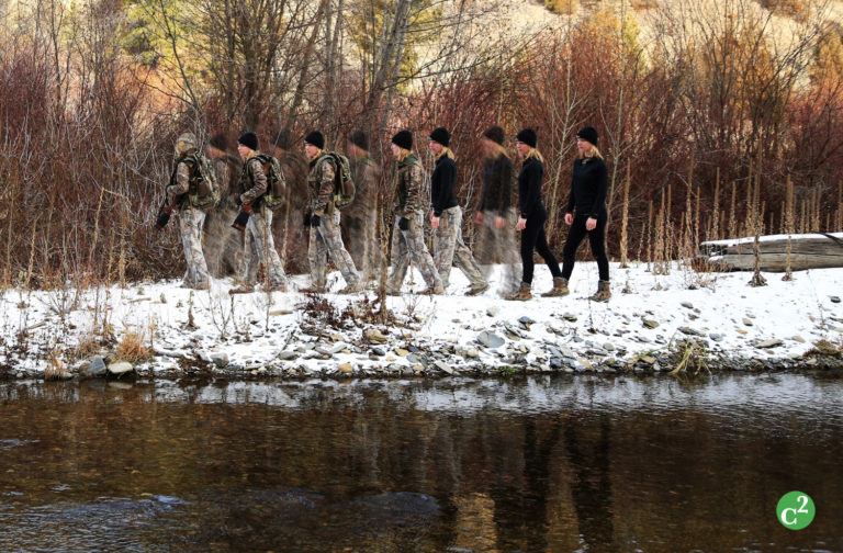 Hunting in any weather requires elite gear, but especially in the cold. Once the snow flies or the temp dips below 30, the right base layer is key to staying warm. As a petite lady I have always struggled to find that perfect fit and right temperature until I tried the C2 Performance base bottom and Elite Half Zip top. When it is warmer outside I wear the half zip as my next to skin layer, and when it drops to cooler temps I layer it on top of a long sleeve (as seen here). The layer is a perfect fit for my petite stature and is ultra-lightweight while still keeping me warm. C2 comes in sizes XS-XXL for both men and women.