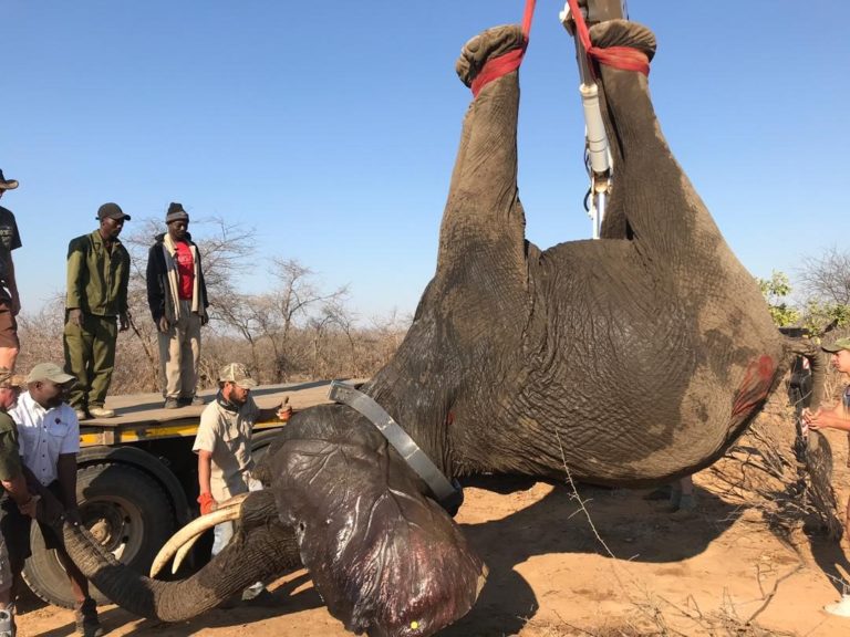 Four elephants were darted and collared to help with the human wildlife conflict. We are hoping with the collars they will be able to inform us when the bulls move to the neighboring community giving us time to go and chase them back before they raid community crops and get killed or wounded by Zimparks.”
